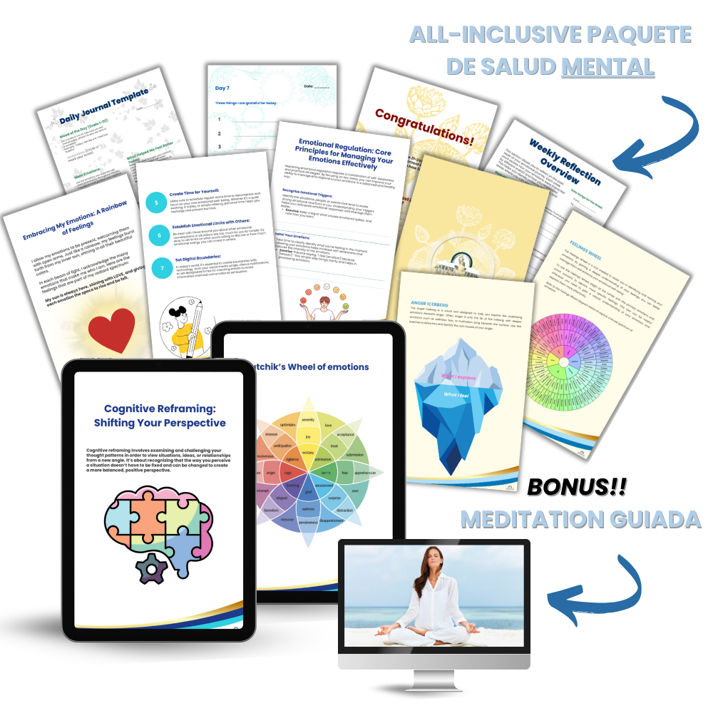 Hemos creado recursos basados en evidencia científica, fáciles de integrar en la práctica profesional, como cuadernos de trabajo, diarios, guías prácticas y meditaciones guiadas. Cada herramienta está diseñada para facilitar el cambio y promover el crecimiento, tanto para tus clientes como para ti.